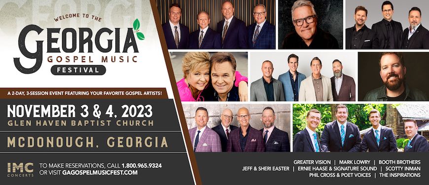 The Georgia Gospel Music Festival is a 2-DAY, 3 SESSION event with sessions beginning at 7:00 PM on Friday, and 1:00 PM and 7:00 PM on Saturday. Just 30 miles south of Atlanta, McDonough, GA is conveniently located outside of the hustle and bustle of Atlanta. Come enjoy a laid back weekend and listen to some great gospel music!