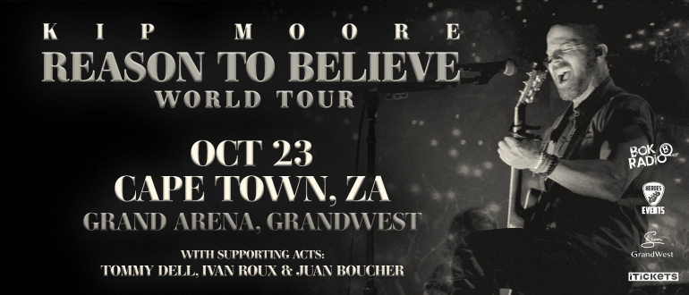 Following a string of record-breaking performances in South Africa, multi-platinum country rock superstar Kip Moore is officially returning for his third South African tour as part of his highly anticipated "Reason To Believe" World Tour.