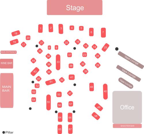 * Let asseblief daarop dat die Vape Lounge Area uit hoë stoele/ kroegstoele bestaan.