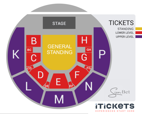 Algemene toegang onbespreekte staanplek op die onderste vlak rondom die verhoog en ramp.
